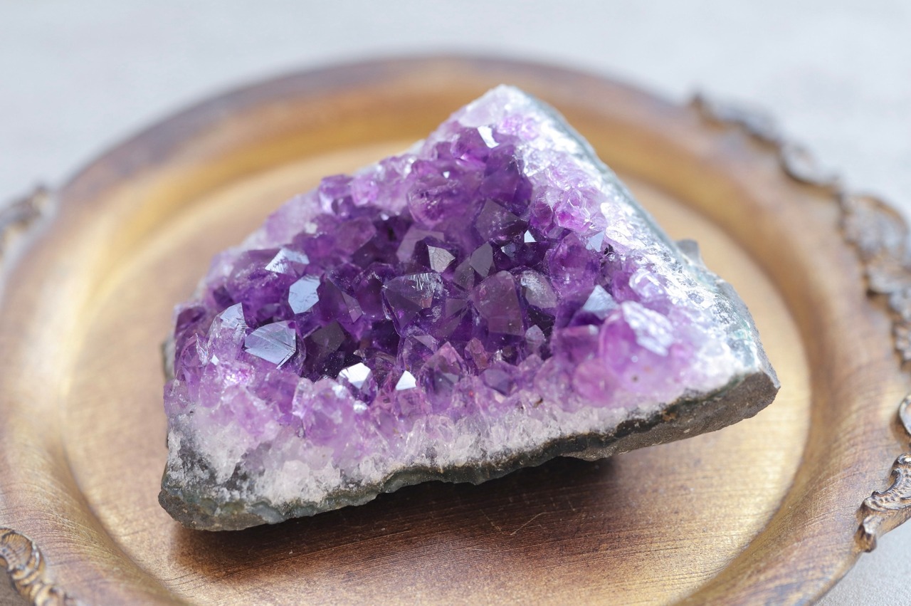 アメジストクラスターは引き寄せの力が強く、玄関から外に向けて置いておくと良い運気を集めてくれるとされています。
