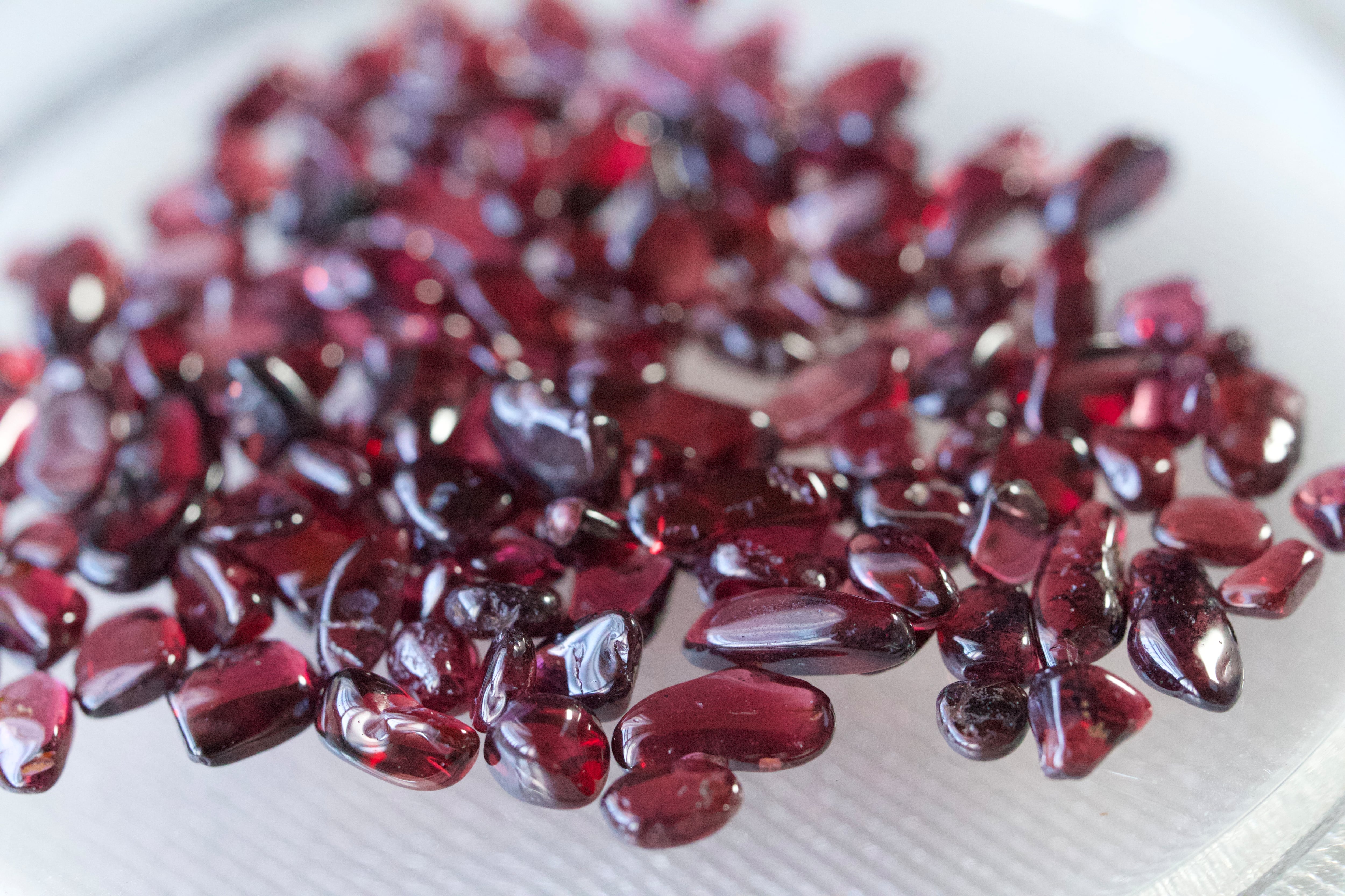 ✸熟したザクロを思わせる色合いから、和名で「柘榴石」と呼ばれるガーネット。