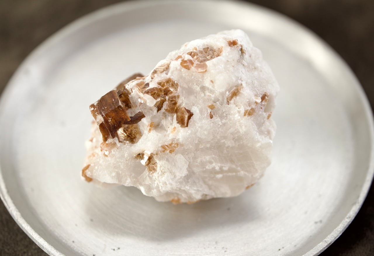 こちらの原石は、キラキラと光る琥珀色の結晶がまるで、スモーキークォーツやトパーズのようにも見えます。